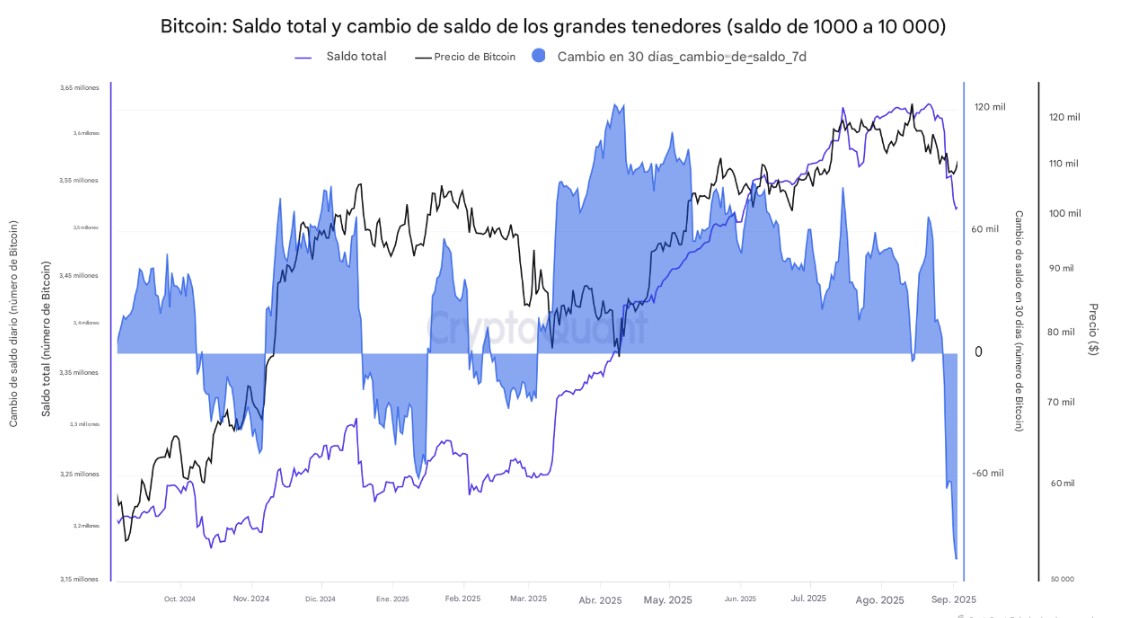 Por su parte, el especialista certificado de CryptoQuant, IT Tech, comentó que, tras las ventas, el saldo total de las ballenas cayó por debajo de 3,36 millones de BTC. También advirtió que el comportamiento de estos inversores «se volvió profundamente negativo» al cabo de un mes.
